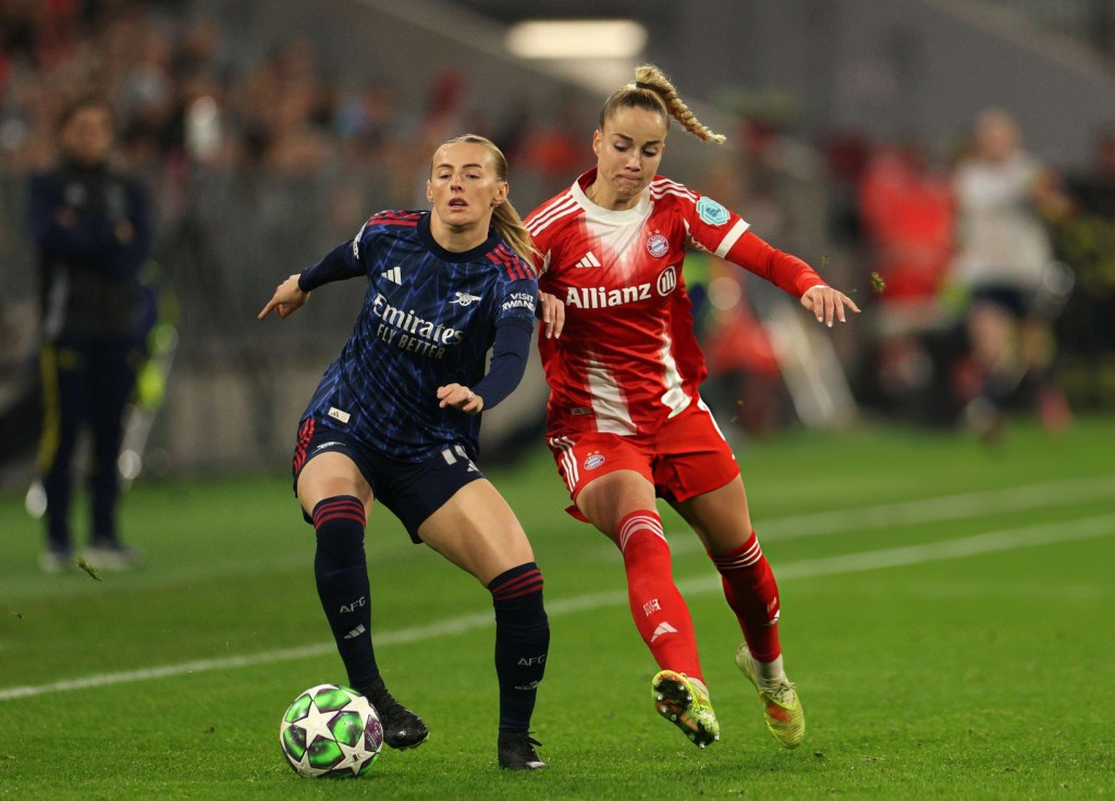 Logo aos cinco minutos, Beth Mead inventou o caos na defesa bávara. Um remate inocente, um desvio infeliz da guarda-redes Maria Luisa Grohs, e Fox apareceu no sítio certo para cabecear o primeiro. O Arsenal respirava confiança, sentia-se dono da noite. Minutos depois, uma recuperação rápida, um passe inteligente de Mead, e Caldentey disparou um míssil que silenciou os alemães presentes. 2-0. Tudo parecia controlado.
